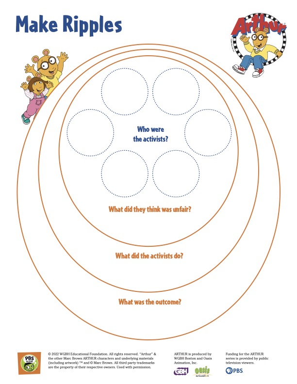 A graphic organizer for students to reflect on who were the activists they've learned about, what cause were they standing up for, what did they do, and what was the outcome.